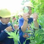 年中さんがペットボトルに水を入れて畑まで行きました。