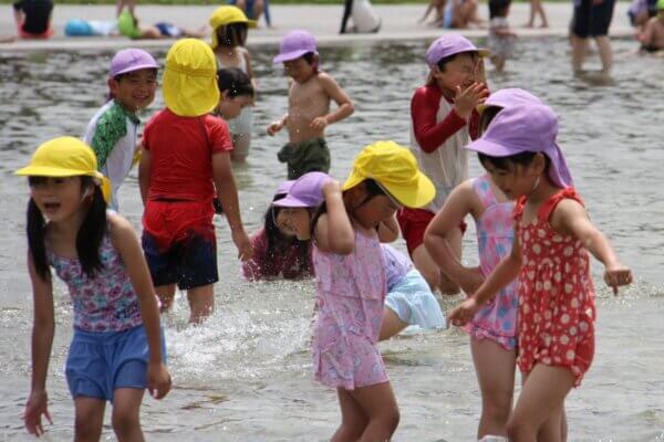 とても天気のいい日に、年長組のお友達でモエレ沼公園に行ってきました。モエレビーチでの水遊びは最高でした。