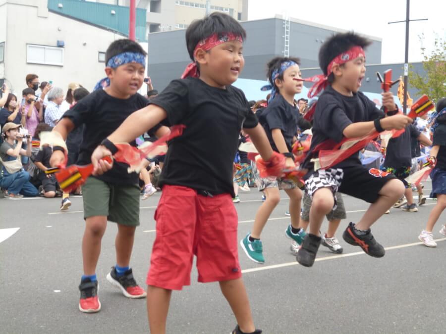 大きな音に負けないくらい、気合の入った掛け声を出し、踊り切った年長さん(よさこいチーム)の子どもたちです。