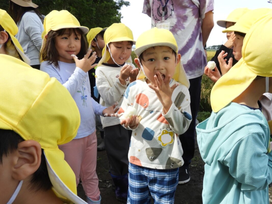 「田んぼ貸してくれて嬉しかったね」「頑張ってくれてるからご飯食べれるんだね」「田植えした後もずっと育ててくれたんだね」と子どもたちからも声が上がり、自然の恵みと農家のみなさんへ改めて感謝する一日となりました。