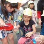 色水遊び♪混ぜると色が変わる不思議が楽しいですね。