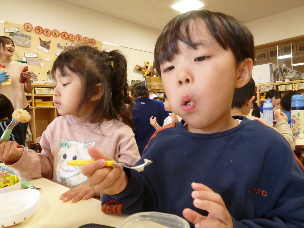 みんなで顔を見合わせながらおいしいおいもをモリモリ食べました。